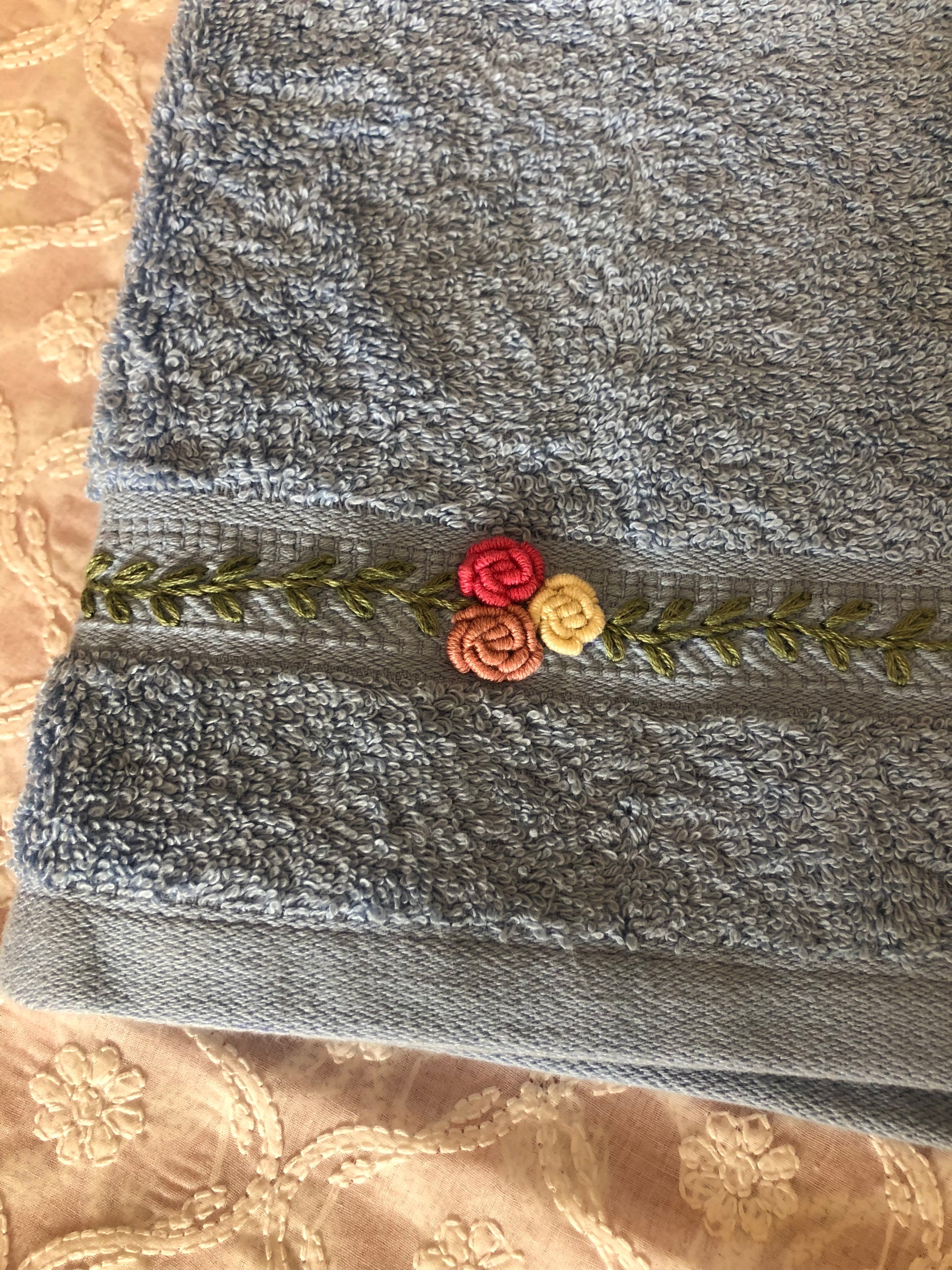 Note: Embroidery on both sides of the towel. There are a few visible drawing pen marks on one side.