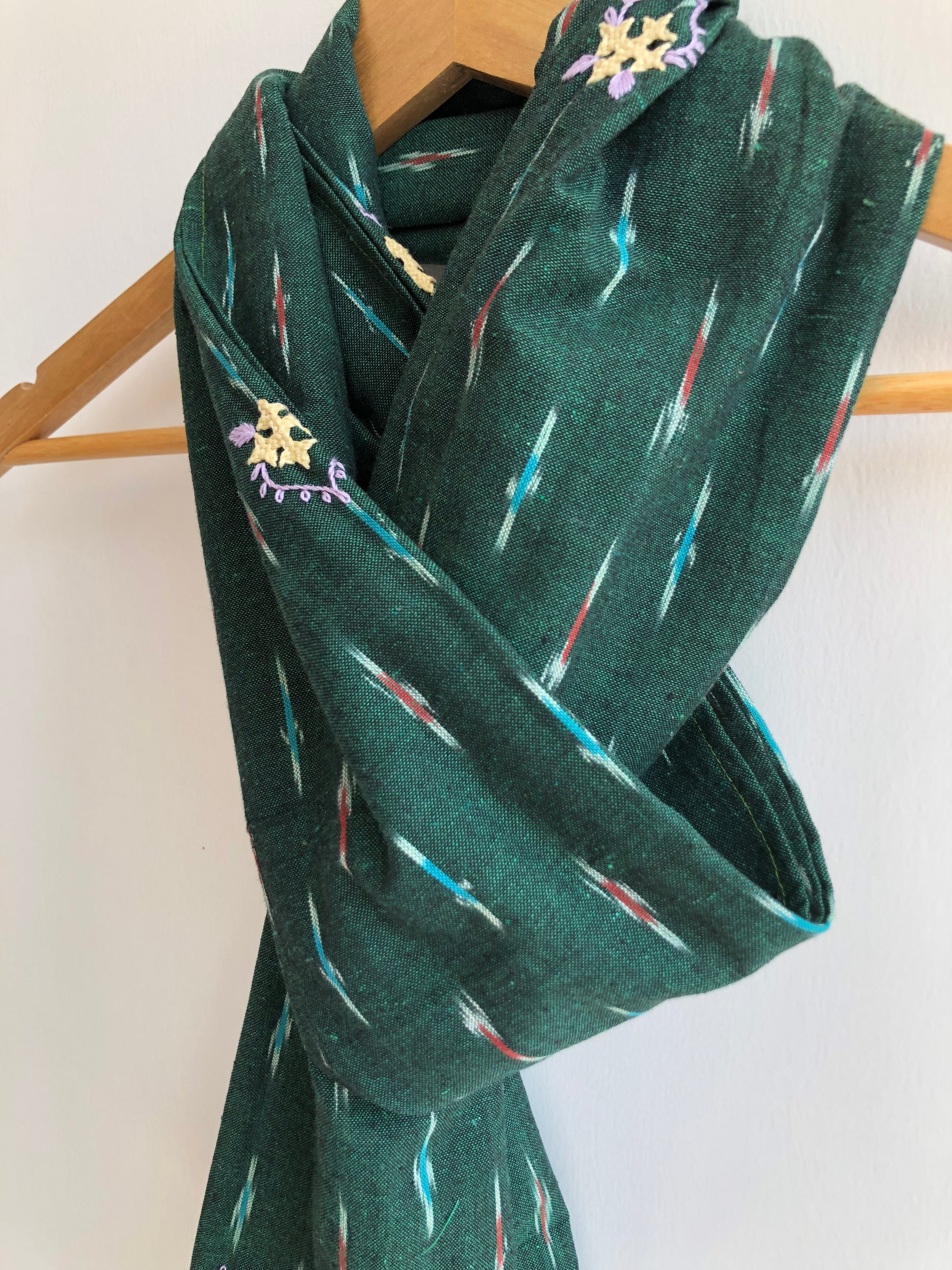 To preserve the beauty of the embroidery, gently hand wash in cold water with similar colors. Do not wring. Lay flat and dry in the shade. Warm iron on the reverse side.